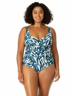 Look great even while you protect yourself from the sun! This one piece is perfect to wear as a cover up over your bikini, and to keep the sun off your skin during those hot summer days. Designed with a zip up front and flutter sleeves for a romantic touch. UPF 50+ sun protection makes this suit not only stylish but functional for all your activities, whether in or out of the water.