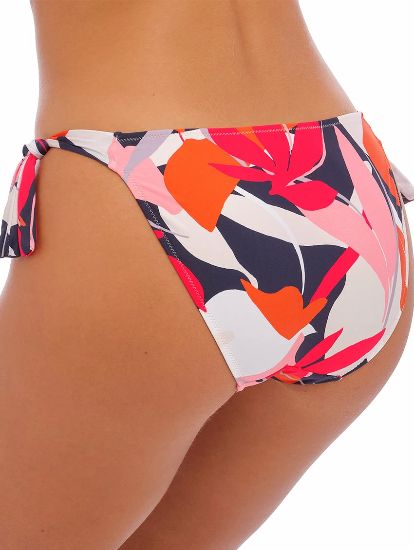Jump full force into summer vacation mode with this bright style from Fantasie. The Almeria Tie Side Swim Bottoms feature a striking palm leaf print with contrasting colours, medium rear coverage, and a bespoke fit with the adjustable tie sides.