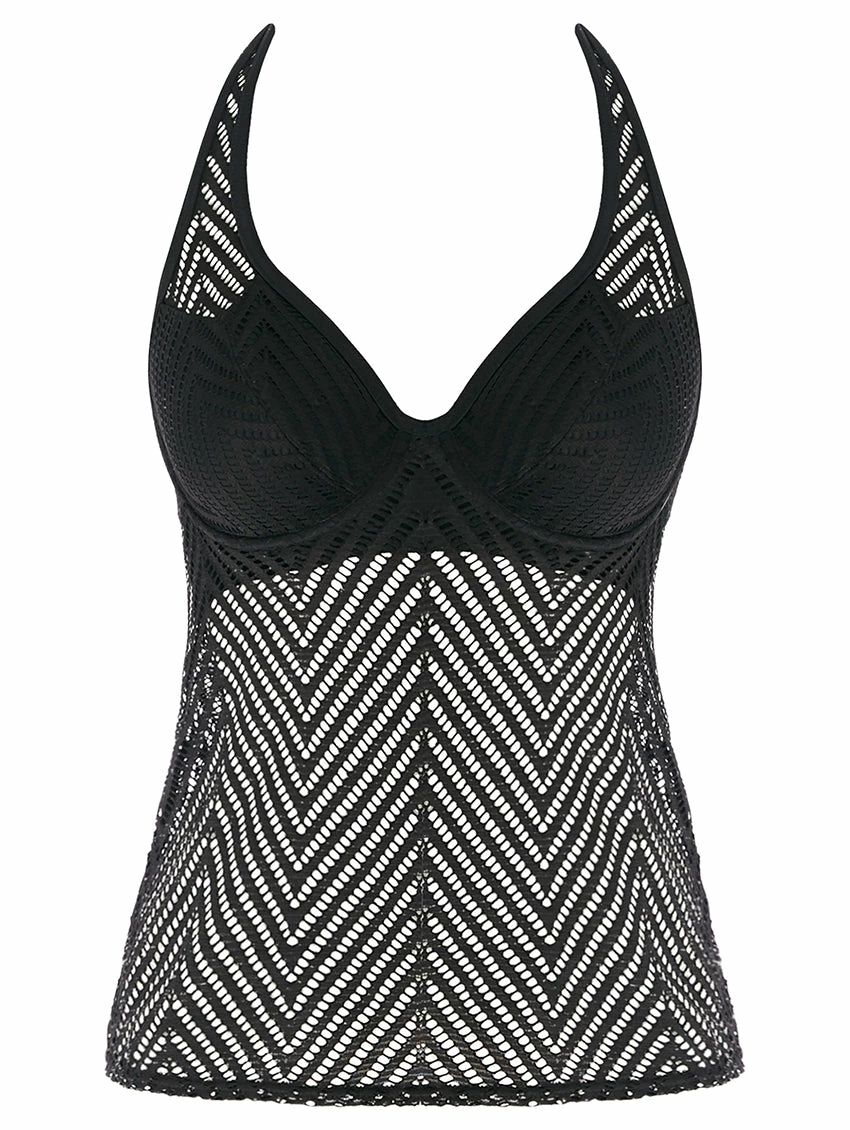The classic Tankini style is rejuvenated with the modern geometric chevron pattern of Freya’s Urban collection. The on-trend crochet texture blends beautifully with the lightly padded foam cups to create a rounded shape and support, while the plunging neckline and halter neck ties create an ultra-flattering look.