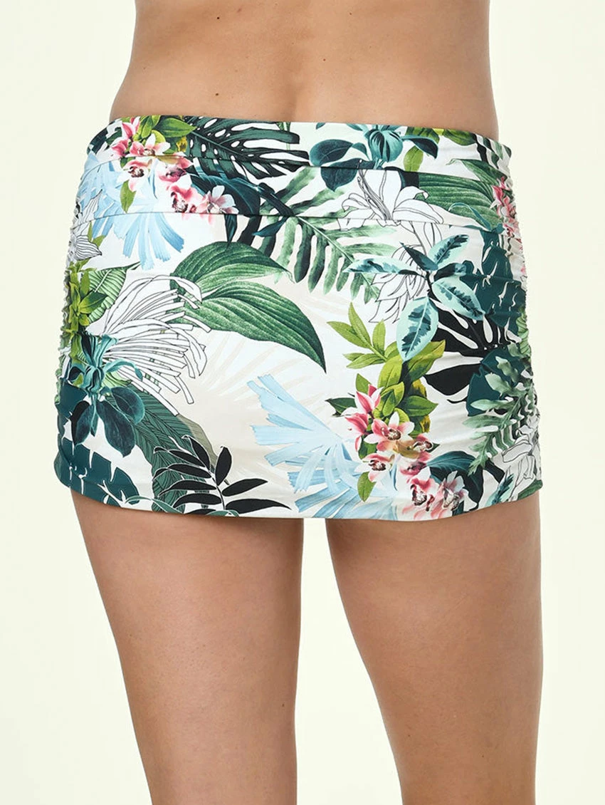 The Nature Glow Shirred Swim Skirt from Jantzen stuns in the beautiful Palm Leaf print. Featuring a flattering skirted bottom with ruching and tummy control that adds not only style but functionality.