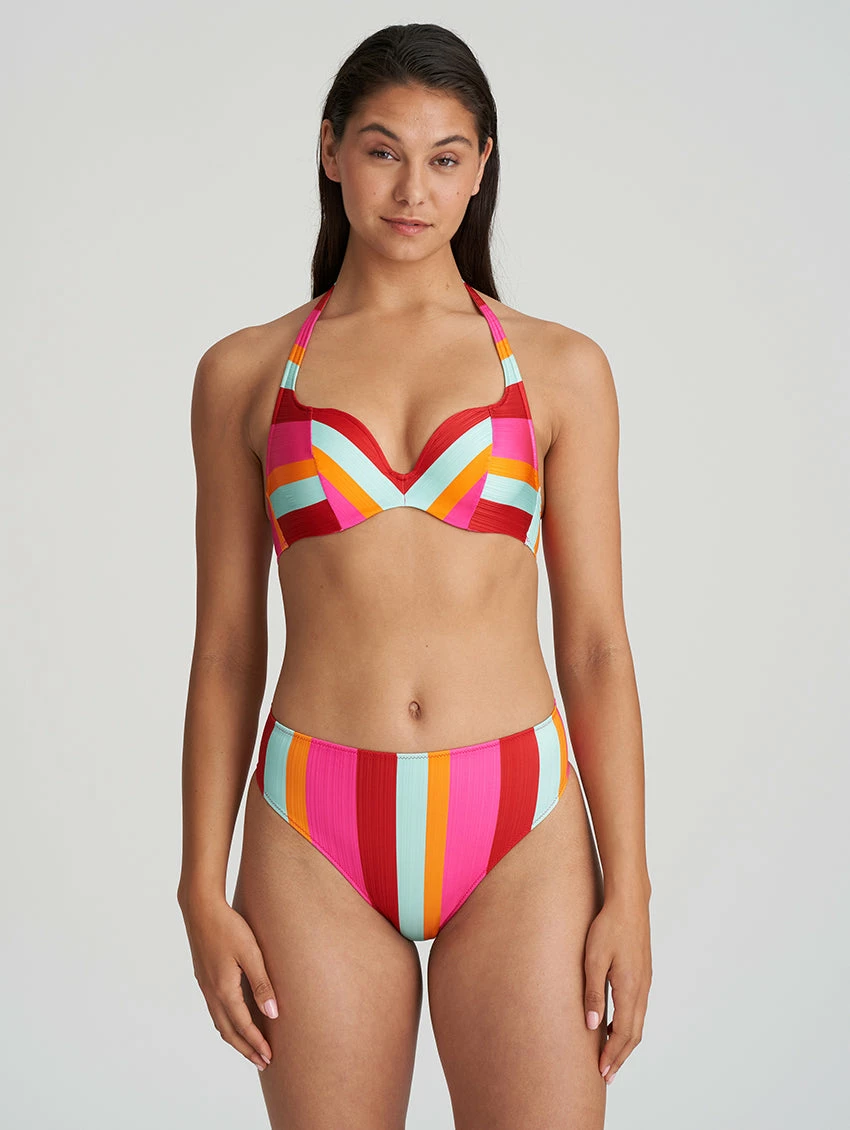 You can never go wrong with stripes! An instant mood booster with its fun combination of stripes, bright colours, and a flattering design, the Marie Jo Tenedos Padded Bikini Top really does steal the show. Featuring a flattering heart shape neckline to accentuate your cleavage, and adjustable straps that can be worn over the shoulders, criss cross, or as a halterneck.
