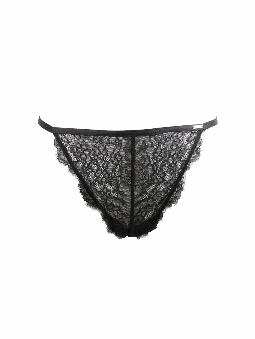 Your new favorite thong has arrived! Designed by India Reynolds herself, the India Embroidery Thong features a cheeky semi-sheer front panel and is decorated in beautiful embroidery. This flirty tanga style thong is finished with luxe gold hardware details, a perfect match to the India Embroidery Basque.