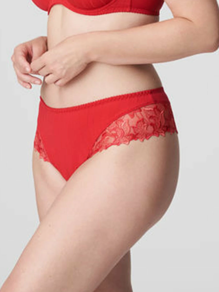 Deluxe thong to match perfectly with your PrimaDonna Deauville in Scarlet. Fully opaque, featuring lots of detailed embroidery.