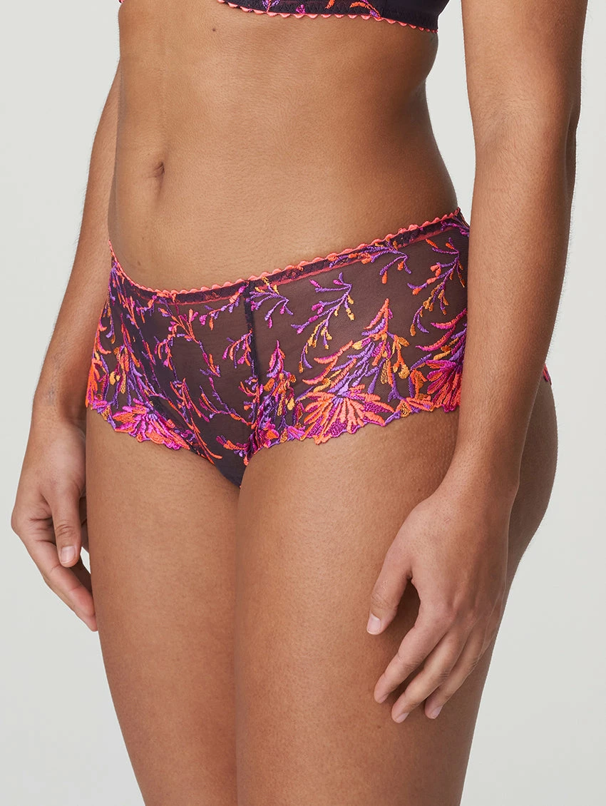 The PrimaDonna Las Salinas Luxury Thong is a one of a kind stunner. With all over embroidery in vibrant neons against a neutral black background, you’ll feel vivacious in this thong. This style features a high cut to elongate the leg, a cheeky covered thong back, and stunning sheer embroidered mesh.