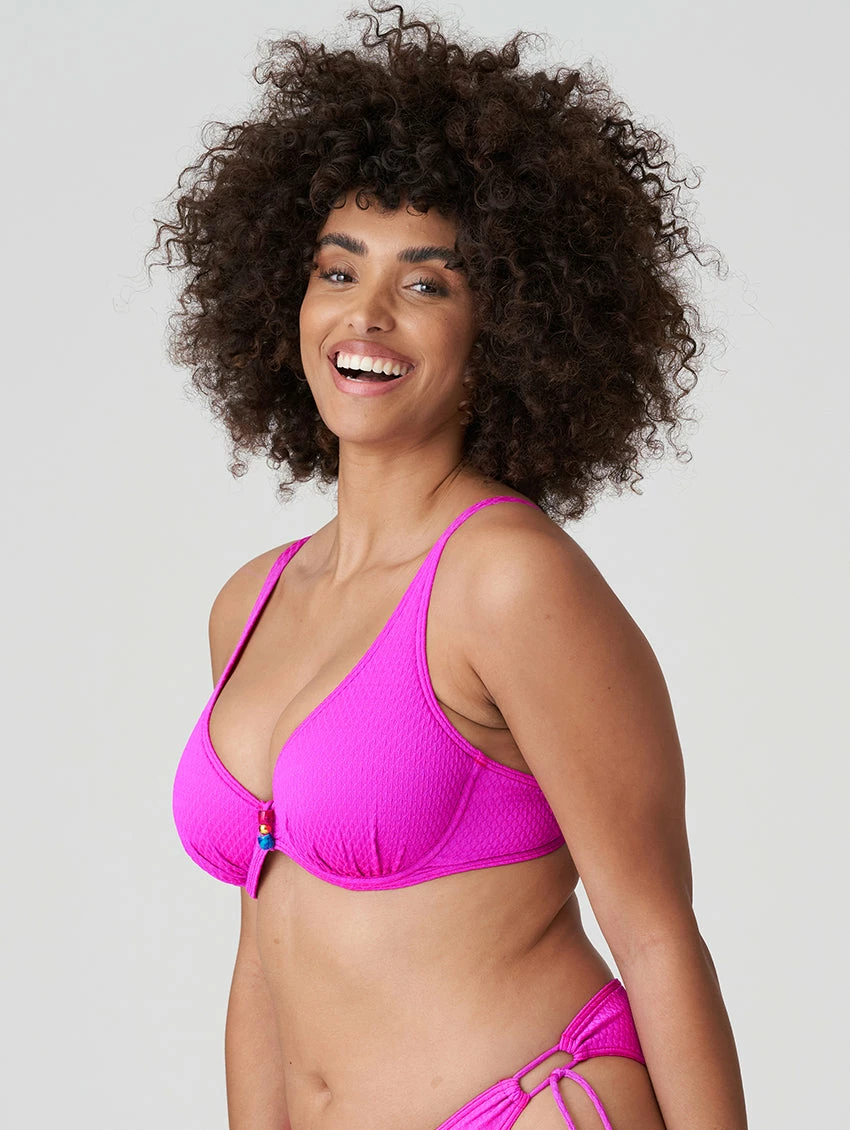 Splash into Summer with the PrimaDonna Narta Plunge Bikini Top! A sexy, triangle bikini in a waffle swimwear fabric with coloured beads on the gore for a fun, playful look. With straps that can be worn over the shoulders or as a halter style, this swimsuit can do it all.